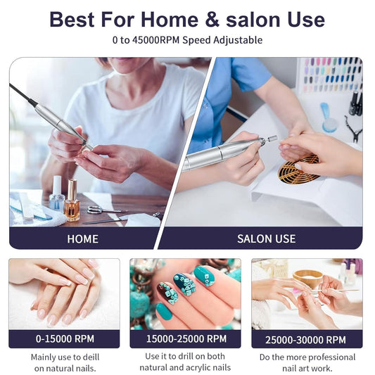 【45000RPM Super High Speed】 Professional IDFINE Electric Nail Drill features......