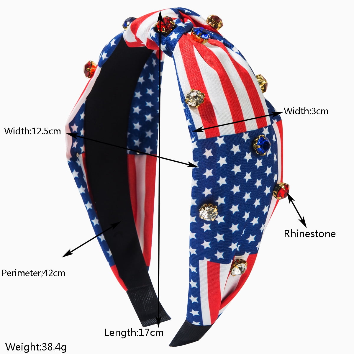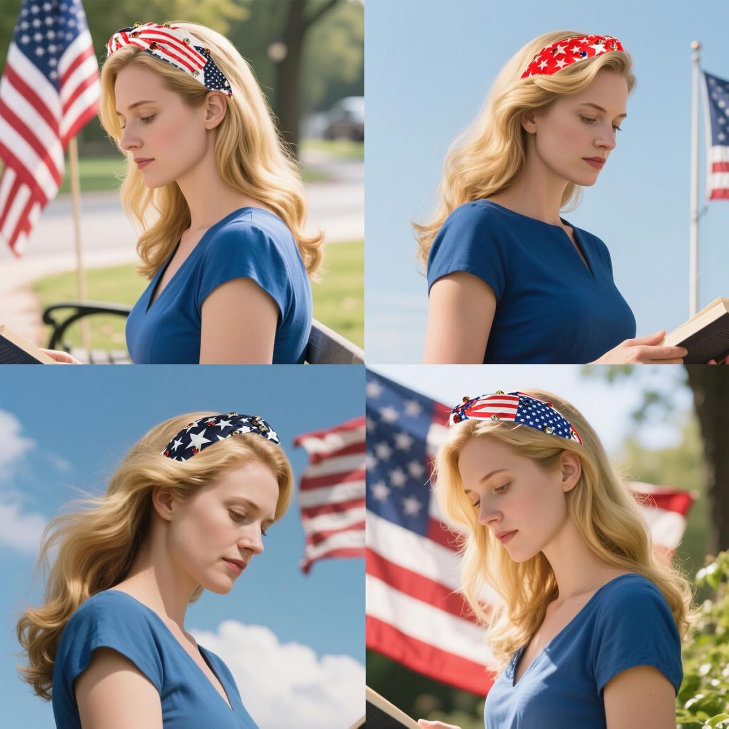 EHIW 4PCS American Flag Headbands for Women ,Wide Knottted Headband, USA Red White and Blue Rhinestone Patriotic Headbands, Crystal Jeweled Hairband, Independence Day Hair Accessories Gifts