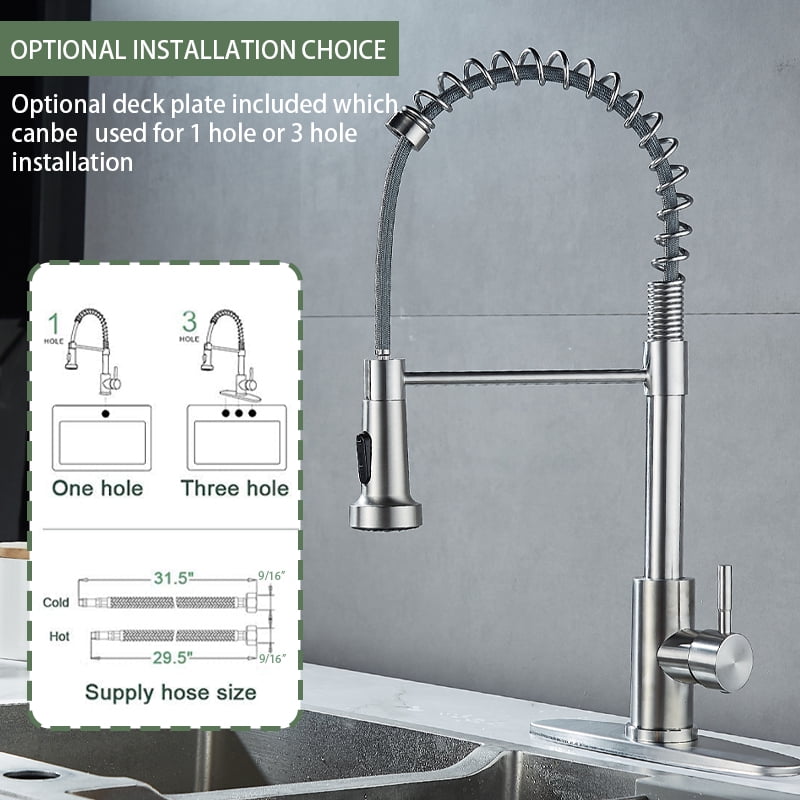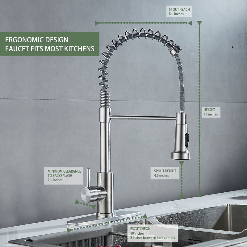 Your faucets for kitchen sink with commercial style spring design and the compact height 17”, can easily matches all decorating style and place, such as farmhouse kitchen faucet, rv kitchen faucet, laundry faucet, camper kitchen faucet.