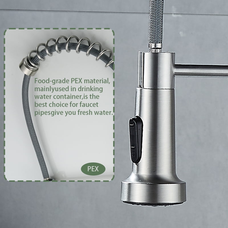 Different water mode functions of the kitchen faucets with pull down sprayer can fulfill different tasks requirement. The high quality nozzle of kitchen faucet offers aerated stream for cleaning and non-splash powerful spray for rinsing, just enjoy your kitchen with this commercial kitchen faucet.