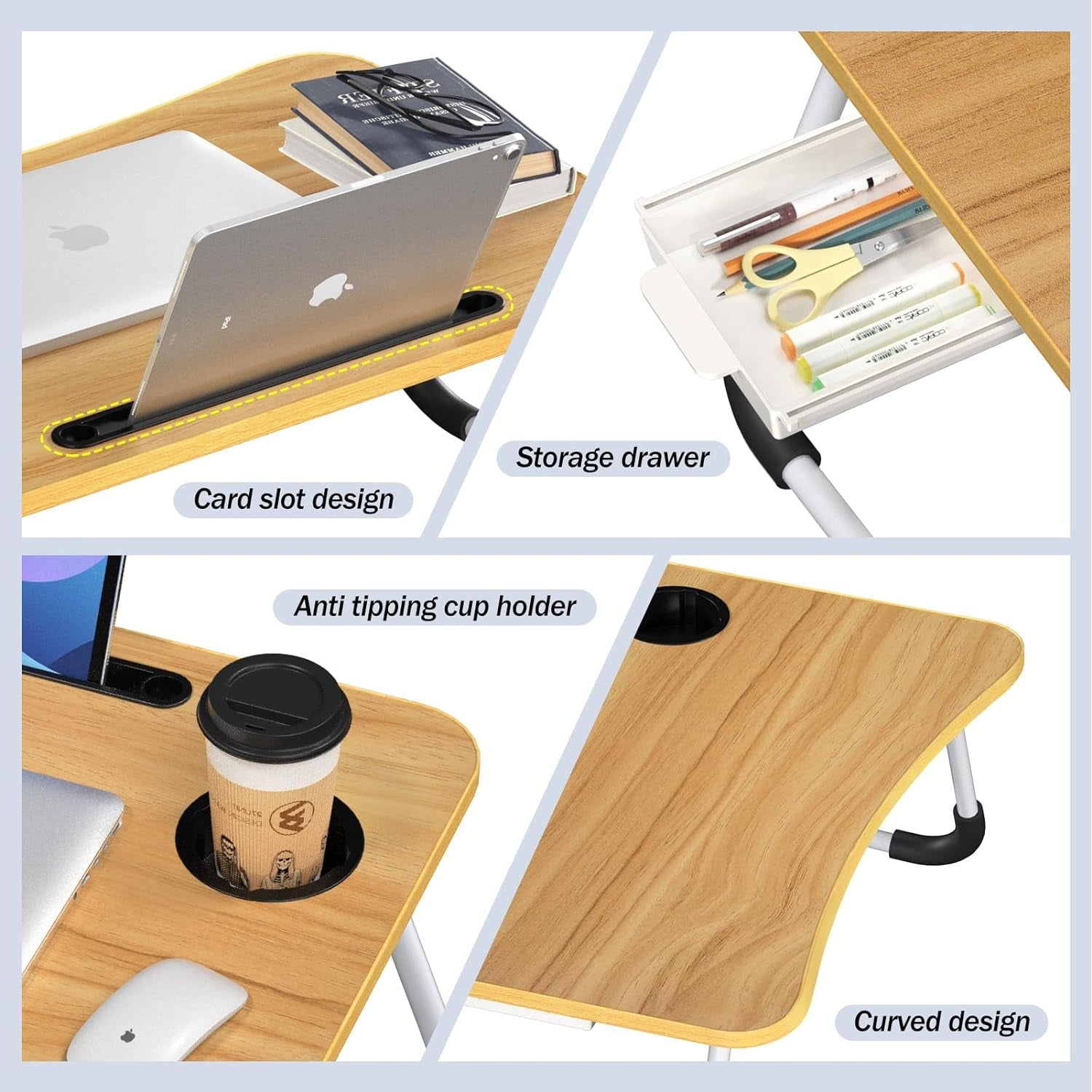 Lap Desk for Laptop - Foldable Laptop Desk for Bed and Couch, Portable and Lightweight Laptop Stand for Bed Breakfast, Working, Reading, and Writing, Wood Lap Table, Large Laptop Tray