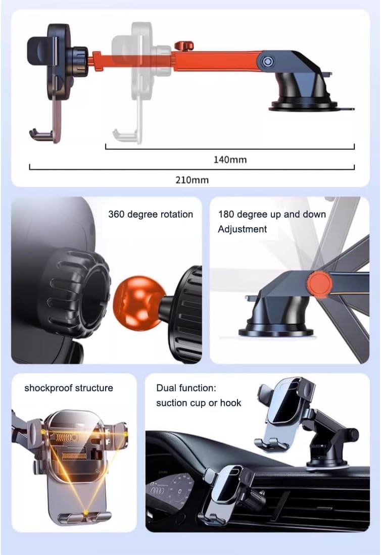 Phone Holders for Your Car, Universal Automobile Cradle Fit for iPhone Android and All Smartphones, Dark Black