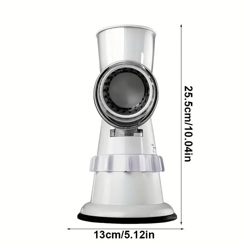 The powerful suction base keeps the cheese grater firm on a clean or smooth counter-tops like marble, glass. Plus, the transparent barrel with an inclined curvature reduce jamming in the cheese shredder