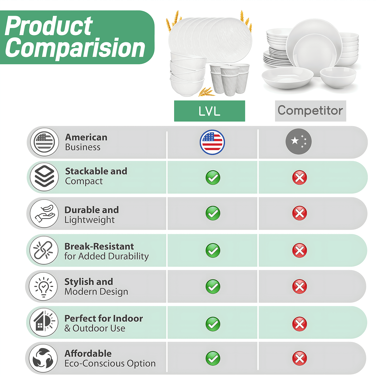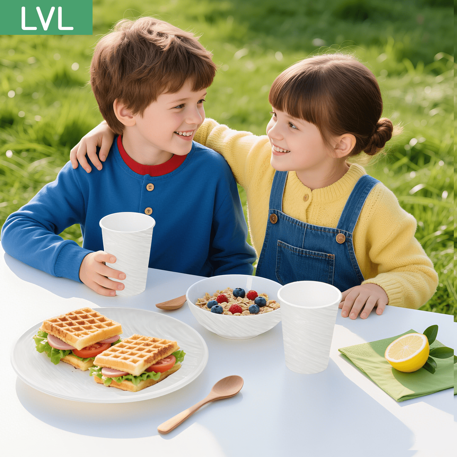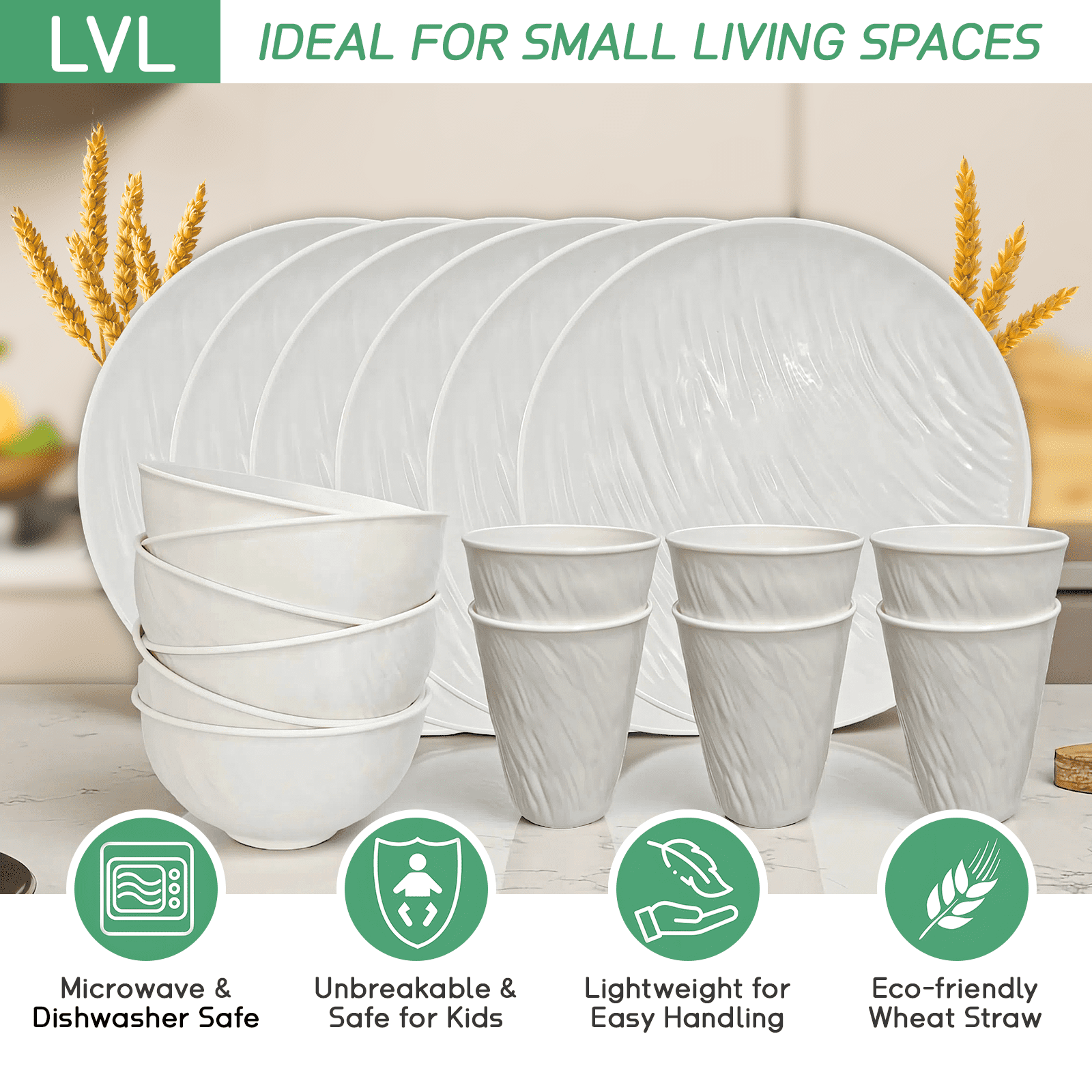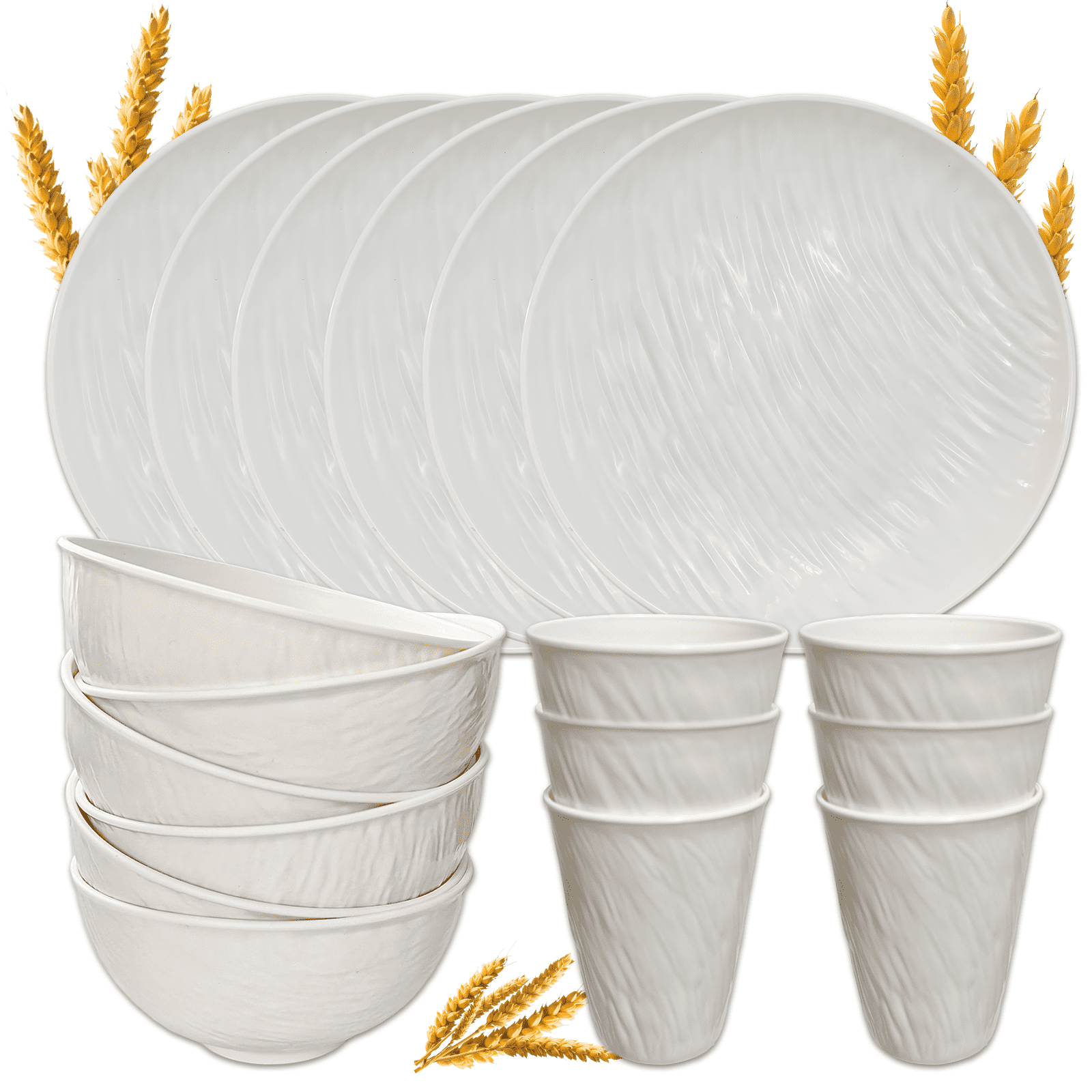 Unbreakable Dinnerware Sets, Rock Texture Bowls Sets for 18PCS, Microwave & Dishwasher Safe, Eco-Friendly, Perfect for Dinners, Buffets, and Events- White